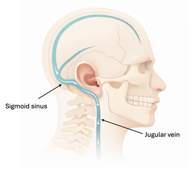 When that bone is absent or eroded, the venous wall is exposed directly to the mastoid cavity. That proximity allows vascular noise to transmit directly to the inner ear.